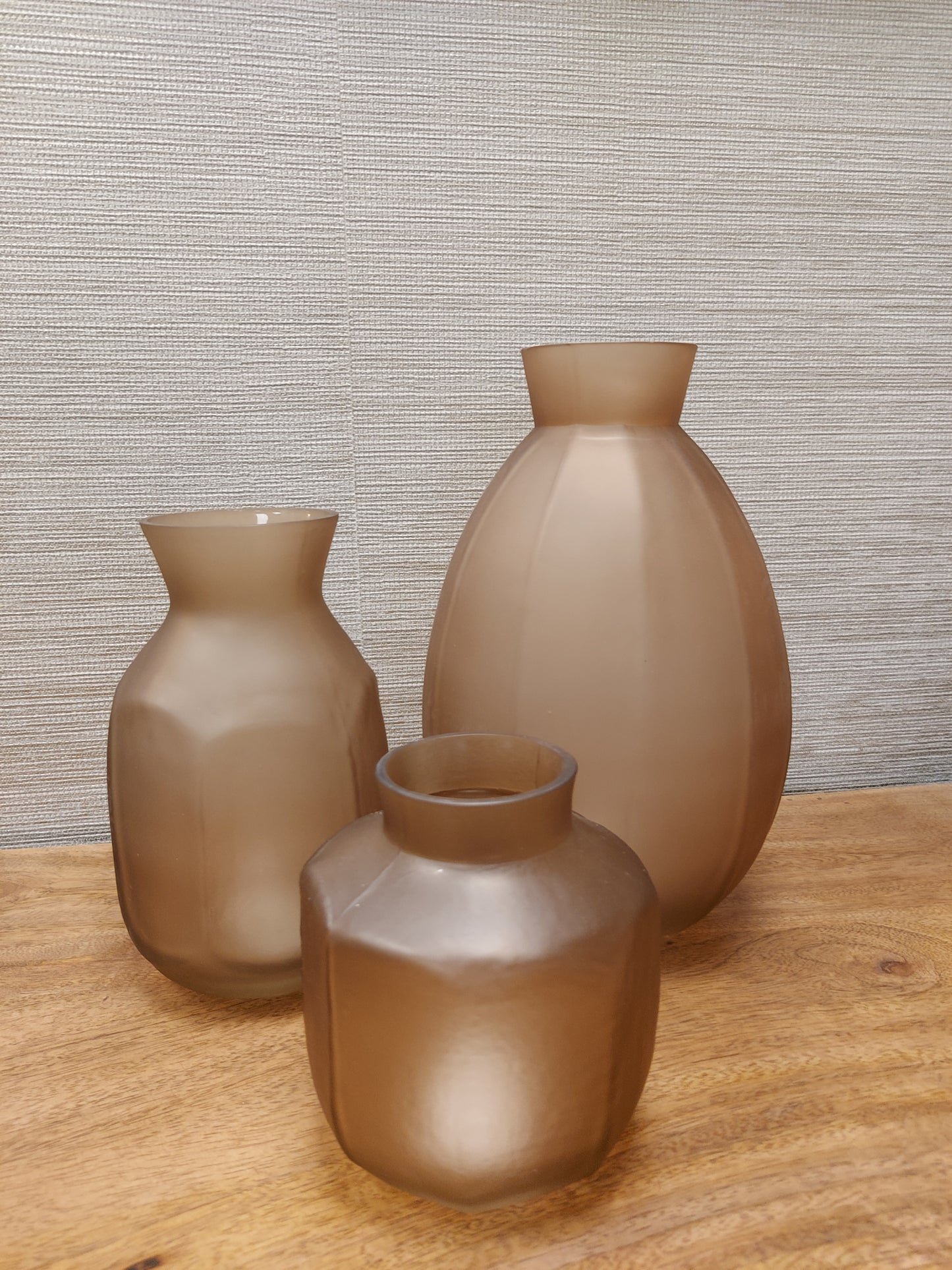 This mouth blown glass vase has an imperfect shape for an organic feel which is perfectly complemented by the frosted glass which gives a beautiful matt finish. Available in 3 sizes